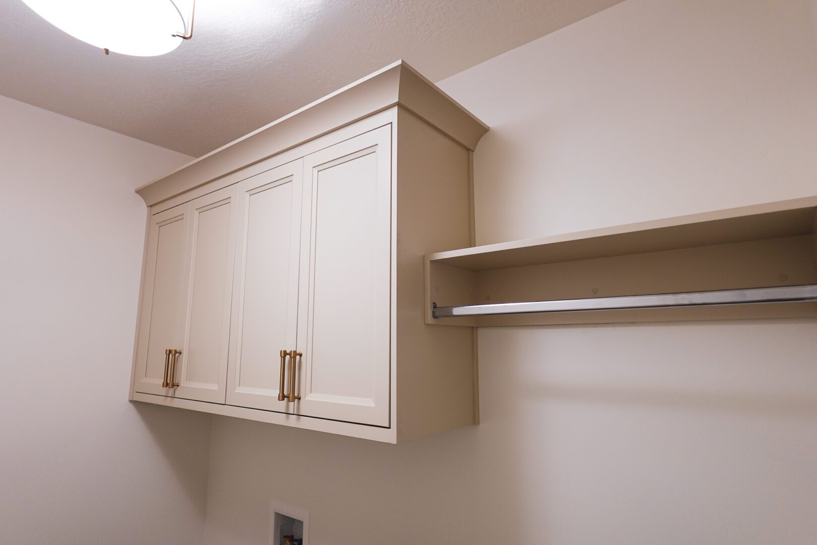 The laundry room is one of the hardest-working spaces in your home — so it deserves cabinetry that actually works as hard as you do. At Rivermill Cabinetry, we design and build custom laundry room cabinets tailored to your space, your workflow, and your style. Whether you're looking for upper cabinets to tuck away detergent and supplies, a folding counter built right over your washer and dryer, lower base cabinets for extra storage, or a built-in hanging rod to air-dry clothes — we build it all, custom to fit.